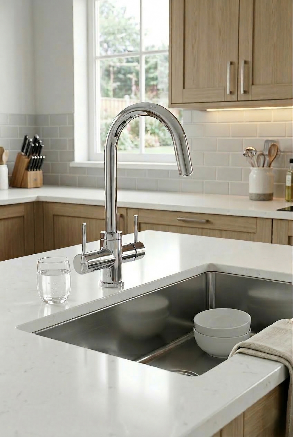 The Genoa is a small range of competitively priced chrome, swan neck, three way mixers. The standard Genoa has a single flow spout meaning the hot, cold and filtered water all share the same outlet. The Genoa mixers with 'Dual Flow' in their name have a dedicated internal tube making sure the drinking water remains separate from the hot and cold.